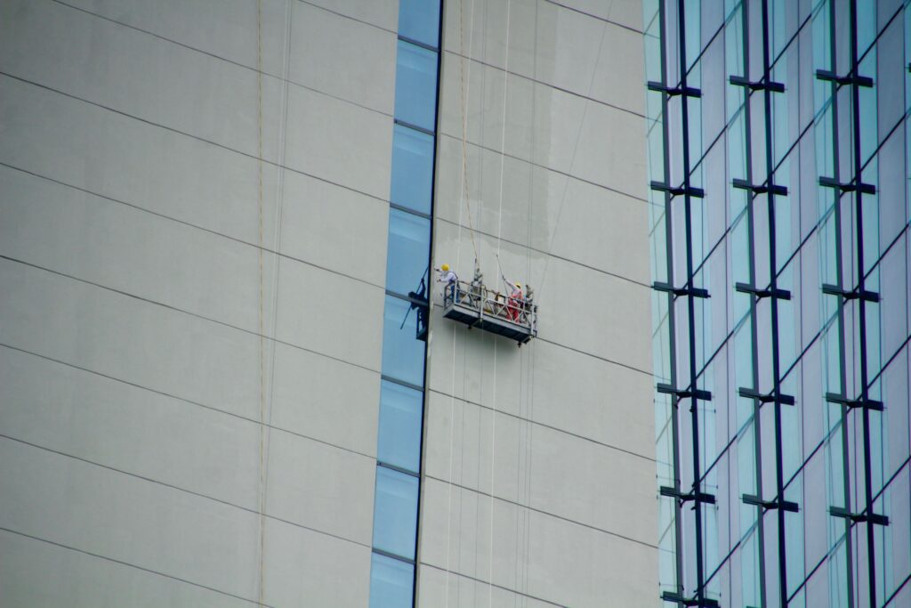 Мы используем специализированные моющие составы, безопасные для окружающей среды и отделки, а также высотное оборудование и промышленный альпинизм, что позволяет обрабатывать здания любой этажности без привлечения автовышек и лесов.